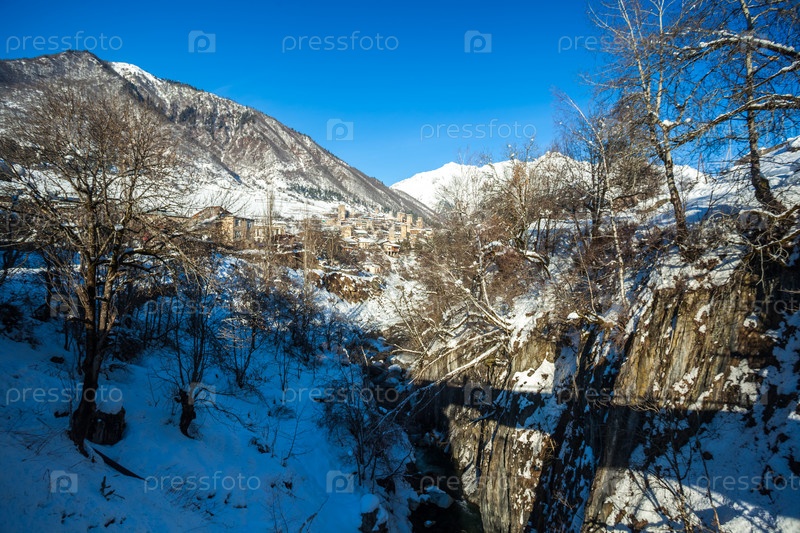 Средневековые башни в Местии в горах Кавказа, Верхняя Сванетия, Грузия