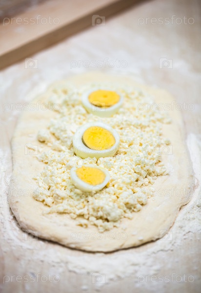 Тесто с сыром и яйцом для приготовления традиционного грузинского хачапури