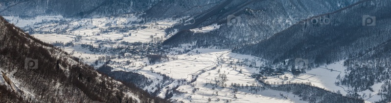 Горная деревня в горах Кавказа в зимнее время, Сванетия, Грузия