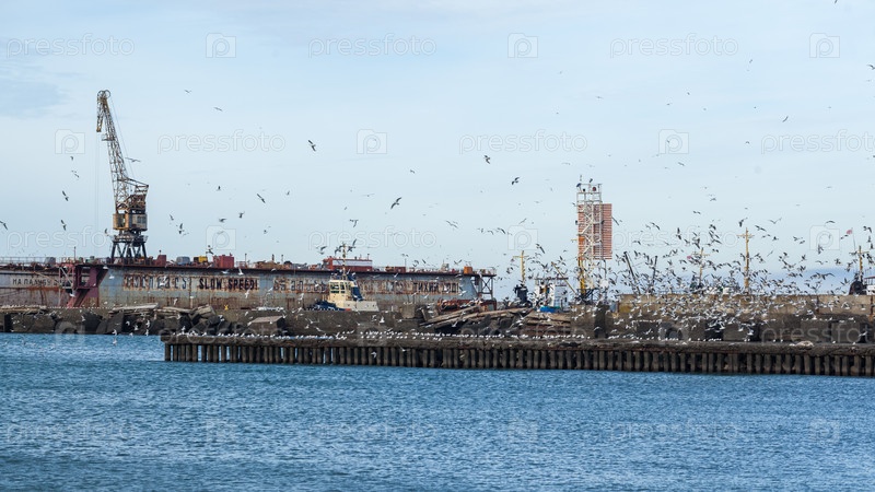Чайки на волнорезе Черного моря, Поти, Грузия