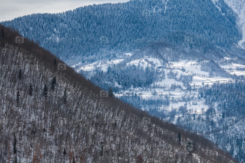 Горная деревня в горах Кавказа в зимнее время, Сванетия, Грузия