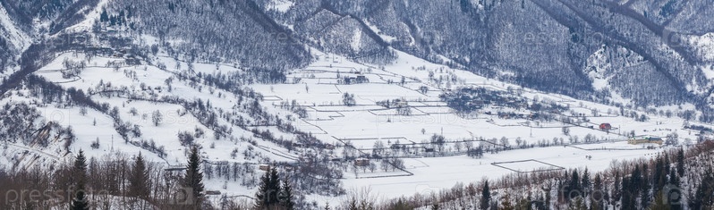 Горная деревня в горах Кавказа в зимнее время, Сванетия, Грузия