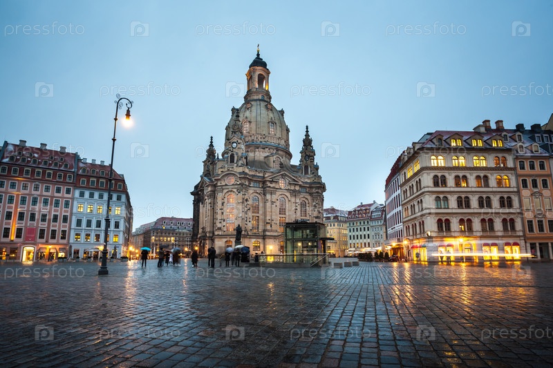 Площадь Ноймаркт и Фрауенкирхе (церковь Богоматери) в Дрездене в ночное время