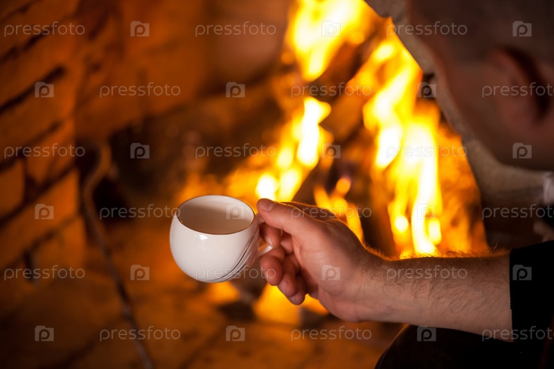 Рука человека с чашей у камина