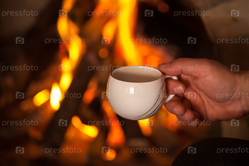 Рука человека с чашей у камина