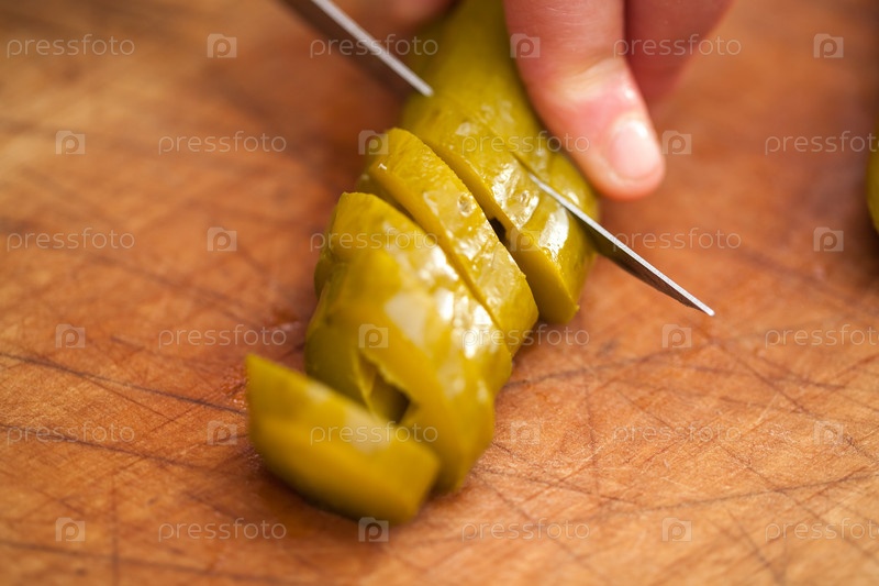 Резать маринованный огурец