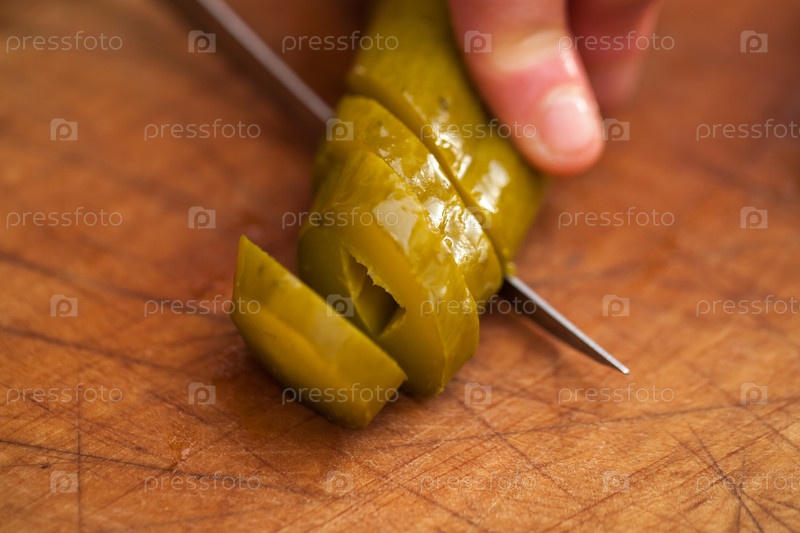 Резать маринованный огурец