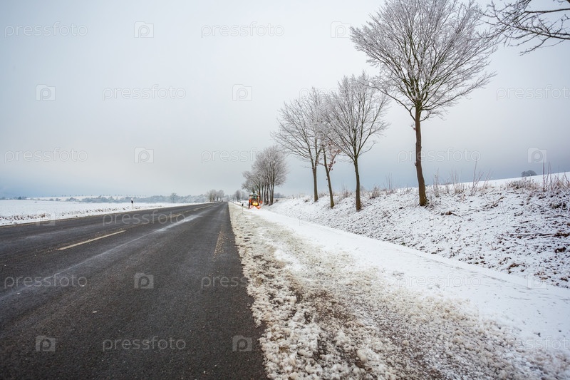 Трактор чистит дорогу от снега