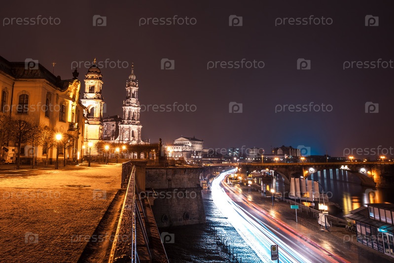 Старый город с набережной реки Эльбы в Дрездене, Саксония, Германия