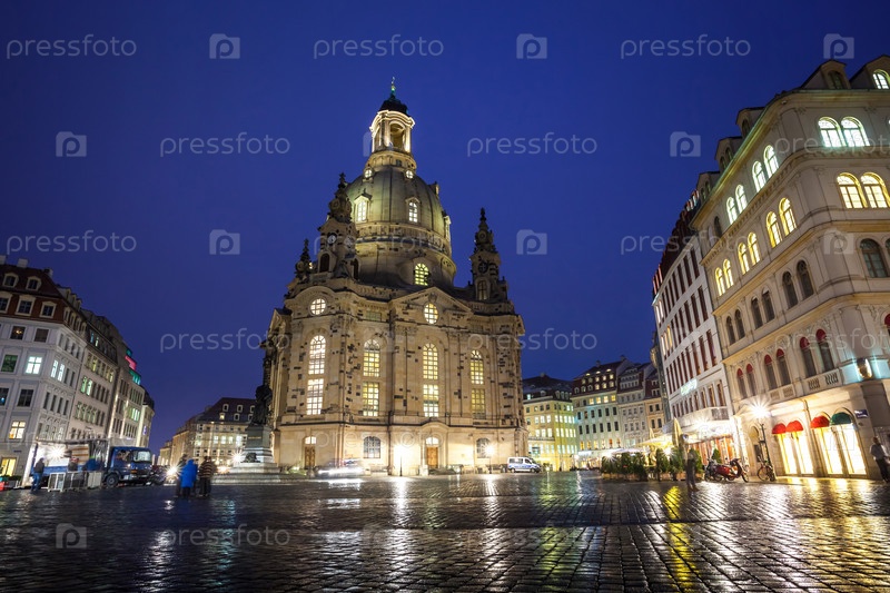 Площадь Ноймаркт и Фрауенкирхе (церковь Богоматери) в Дрездене в ночное время