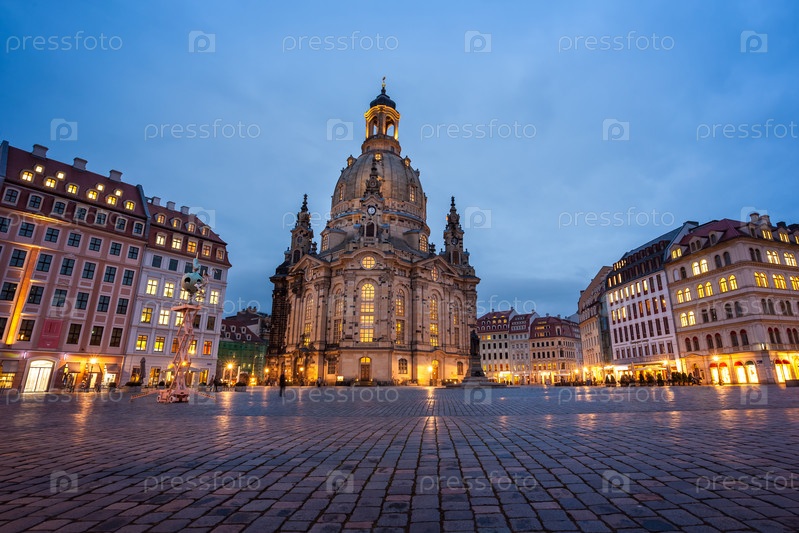 Площадь Ноймаркт и Фрауенкирхе (церковь Богоматери) в Дрездене в ночное время