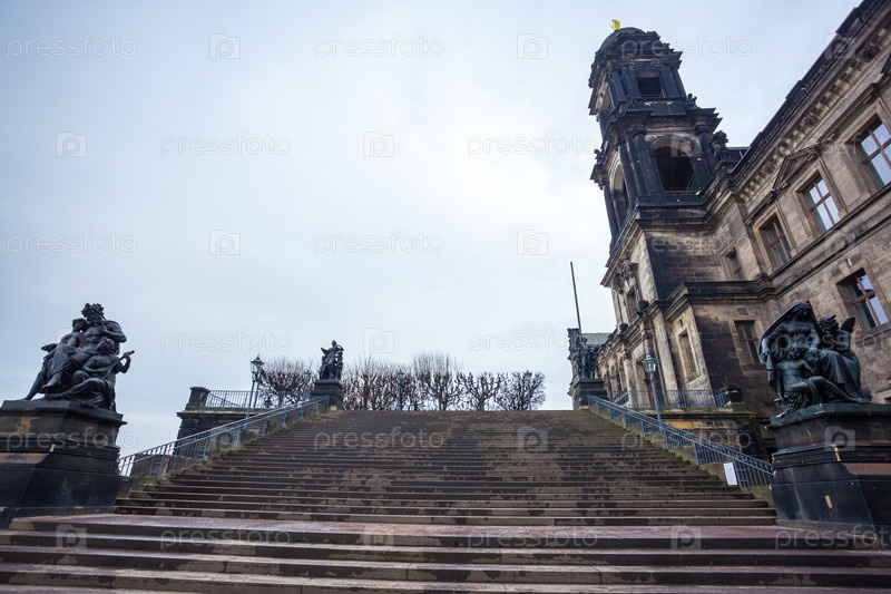 Лестница со скульптурами с обеих сторон в Дрездене, Саксония, Германия