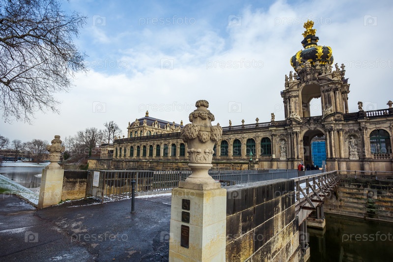Вид на исторические здания знаменитого дворца Цвингер в Дрездене, Германия