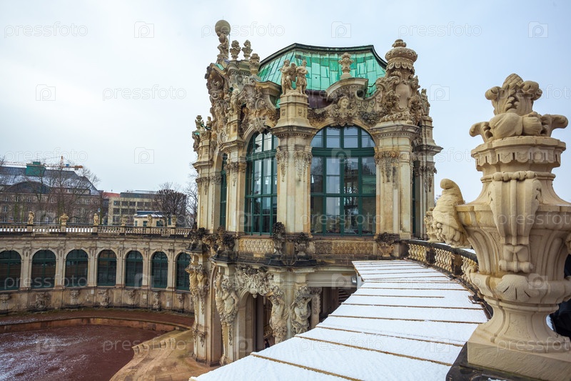 Вид на исторические здания знаменитого дворца Цвингер в Дрездене, Германия