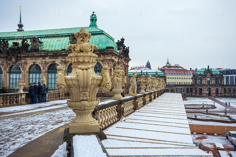 Вид на исторические здания знаменитого дворца Цвингер в Дрездене, Германия