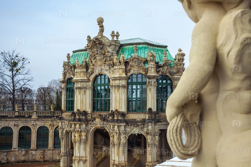 Вид на исторические здания знаменитого дворца Цвингер в Дрездене, Германия
