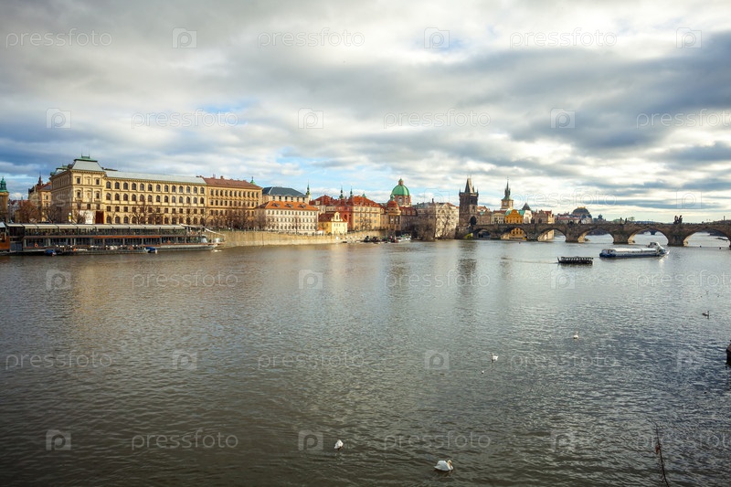 Река Влтава и Карлов мост в Праге, Чешская Республика