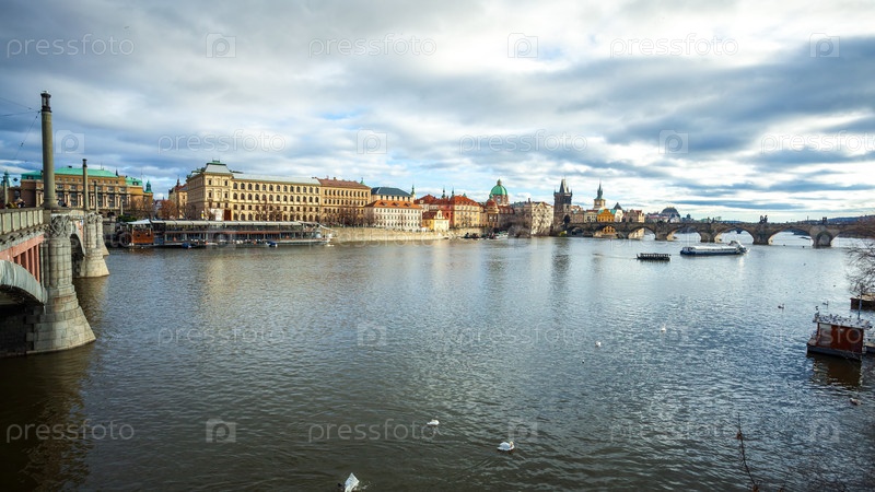 Река Влтава и Карлов мост в Праге, Чешская Республика