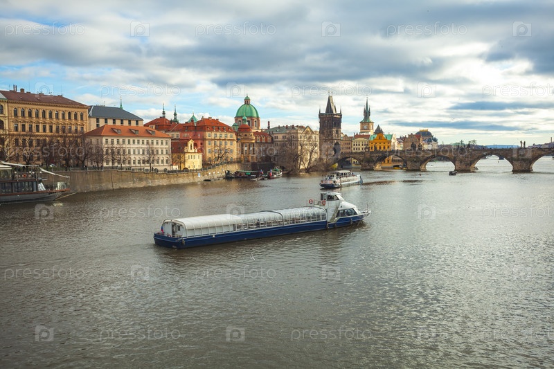 Река Влтава и Карлов мост в Праге, Чешская Республика