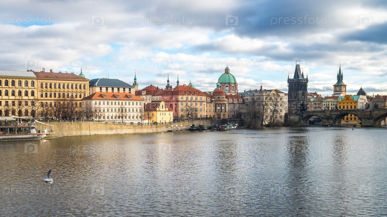 Река Влтава и Карлов мост в Праге, Чешская Республика