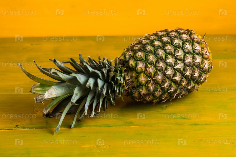 Спелый ананас на желтом фоне