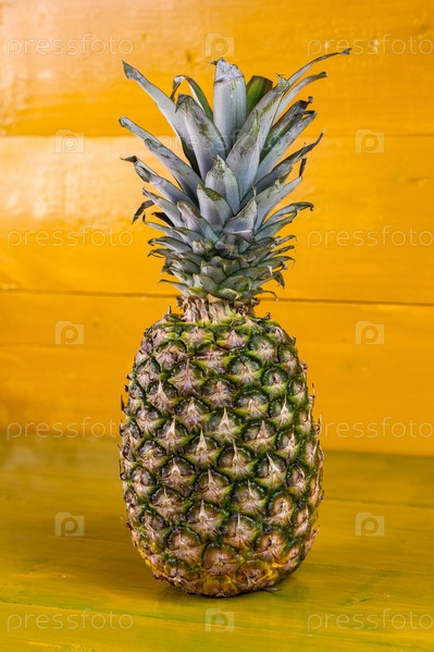 Спелый ананас на желтом фоне