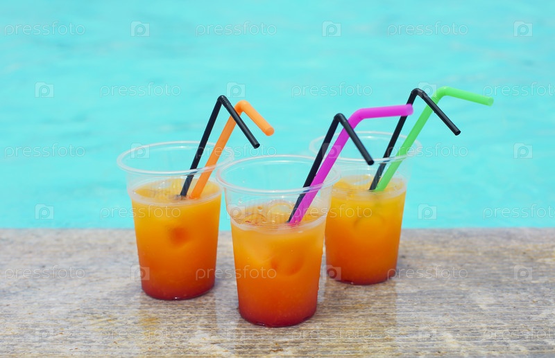 Бокалы тропического коктейля у бассейна