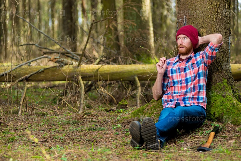 Дровосек после работы в лесу