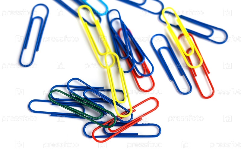 Куча красочных скрепок на белом фоне