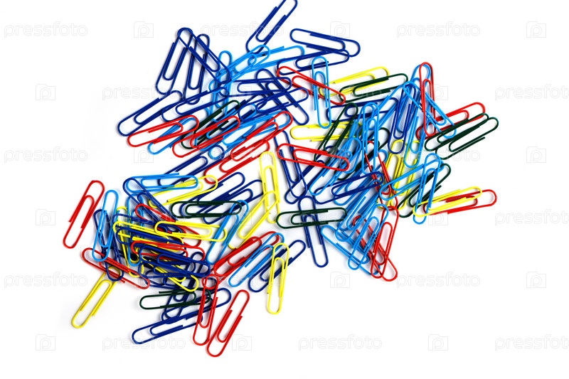 Куча красочных скрепок на белом фоне