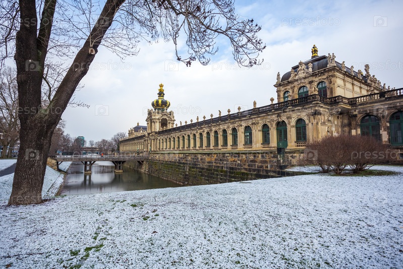 Вид на исторические здания знаменитого дворца Цвингер в Дрездене, Германия