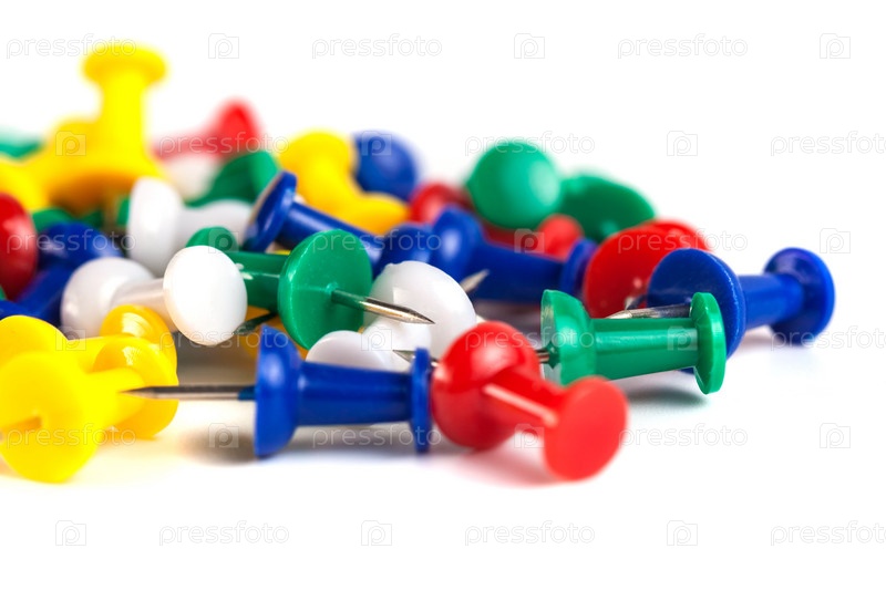 Канцелярские кнопки на белом фоне