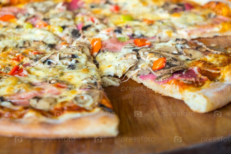 Пицца на деревянной доске