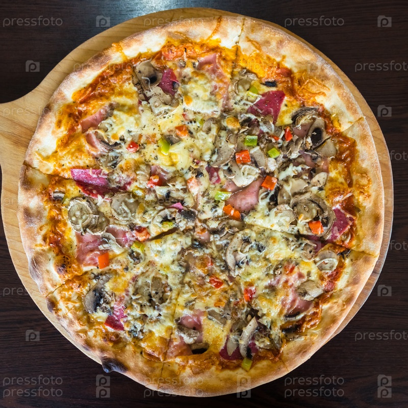 Пицца на деревянной доске