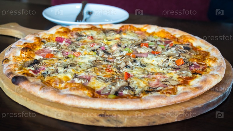 Пицца на деревянной доске