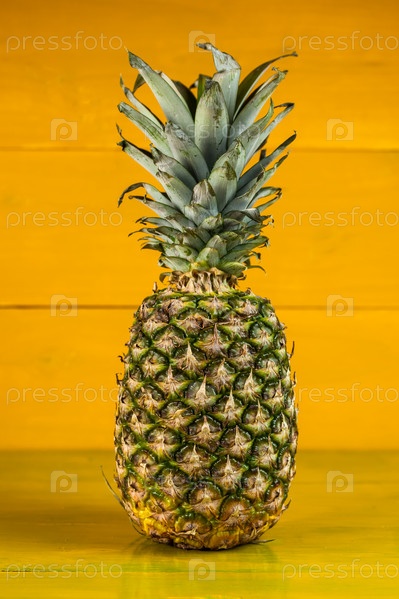 Спелый ананас на желтом фоне