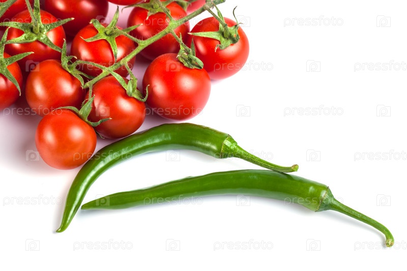 Помидоры и зеленый перец на белом фоне