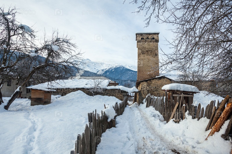 Средневековые башни в Латале в горах Кавказа, Верхняя Сванетия, Грузия