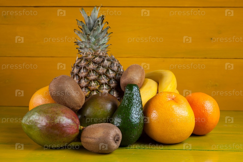 Тропические фрукты на желтом фоне