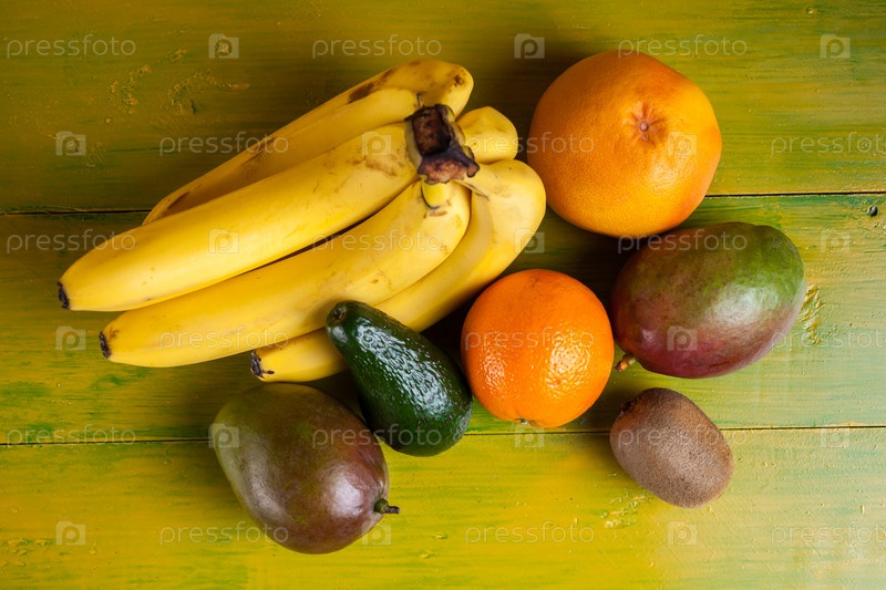 Тропические фрукты на желтом фоне