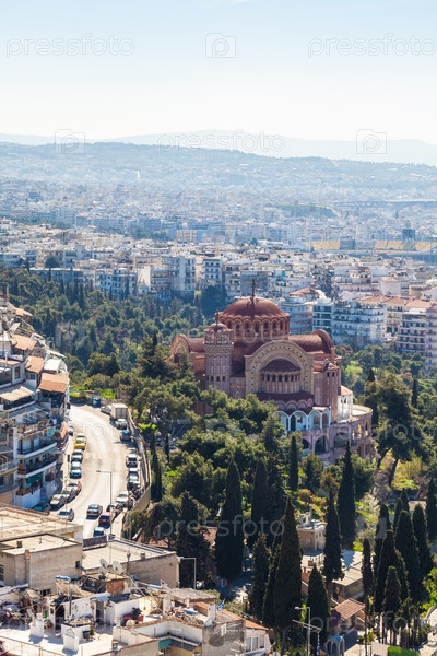 Вид Салониках и Церковь Святого Апостола Павла. Греция