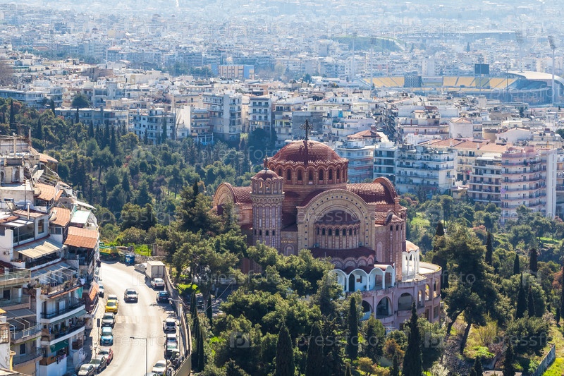 Вид Салониках и Церковь Святого Апостола Павла. Греция