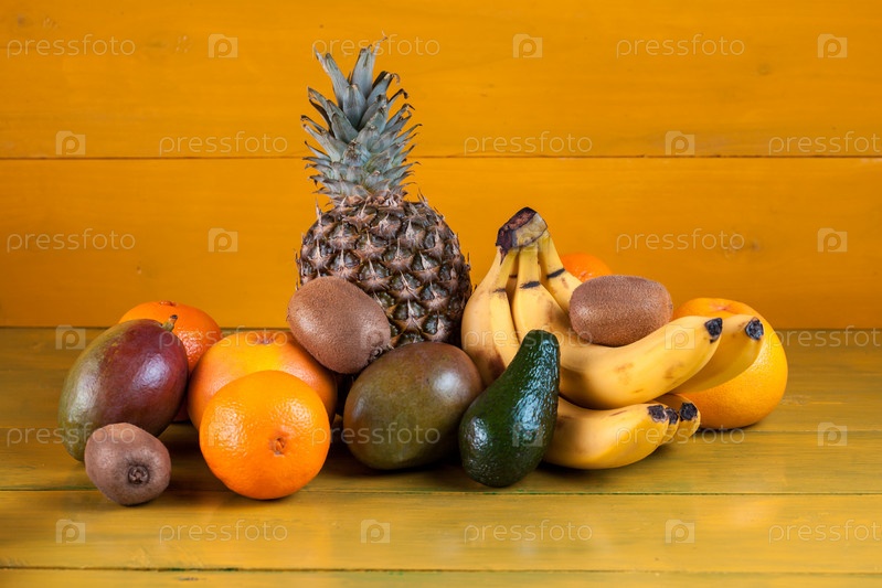 Тропические фрукты на желтом фоне