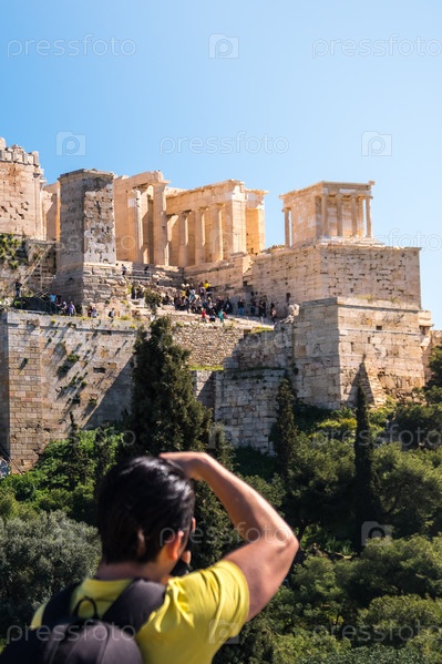 Турист фотографирует Акрополь, Парфенон, Афины, Греция