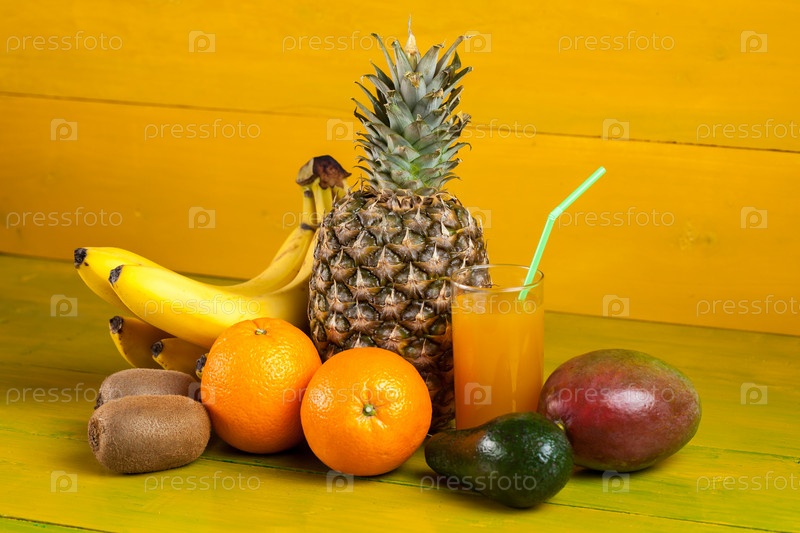 Тропические фрукты на желтом фоне