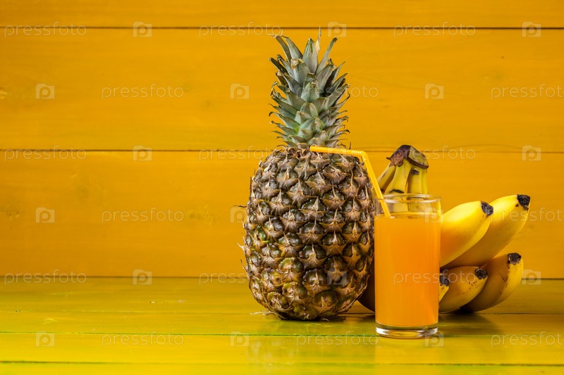Тропические фрукты на желтом фоне