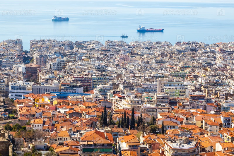 Вид на город Салоники, море и корабли