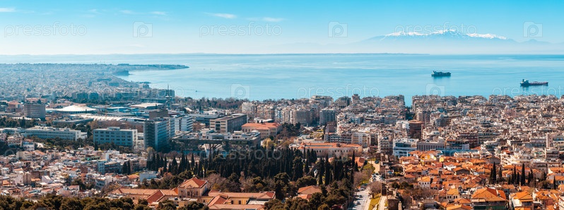 Город Салоники, море и горы
