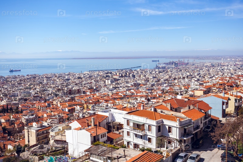 Вид на город Салоники, море и корабли
