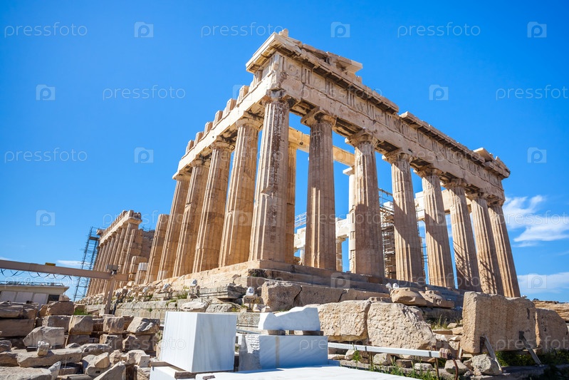 Парфенон храм в солнечный день. Акрополь в Афинах, Греция